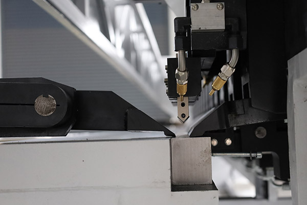 The Jinqiu vertical reciprocating grooving machine adopts a robust frame design and a worktable made of high-strength low-alloy structural steel. The integrated base mold enables one-time forming, allowing mark-free processing even on mirror-finished panels. The entire machine is tempered in an electric furnace to eliminate welding stress and processed in a single clamping via an imported CNC machining center, ensuring parallelism and perpendicularity of all mounting surfaces. Sandblasting treatment guarantees high-quality coating adhesion. During operation, the tool holder remains stationary while the rear feeding mechanism drives the sheet movement, enabling precise control over groove depth and spacing. The machine offers excellent overall rigidity, durability, and stability.